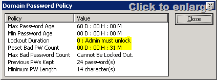 If you set a password lockout policy and then change your mind later, it still remembers the lockout duration and time to reset the bad password count to zero if not exceeded. They don’t do anything but may confuse you if you don’t spot the “Cannot be locked out”. Incidentally, it handles multiple policies applied at domain level correctly, taking link order into account correctly (as you would hope and expect).