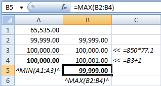 ROUNDDOWN and ROUNDUP both seem to happily return 65,535 as their result. Of course, as Erich Neuwirth pointed out in the Google Groups thread on the subject of the bug, in a way this should not be the case. We know that the result of 850*77.1 is not actually 65,535 but a tiny fraction under that due to floating point inaccuracies.