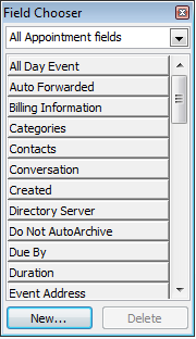 Next, right click any of those field (column) headings and choose “Field Chooser”, then choose “All Appointment fields” rather than “Frequently used”: