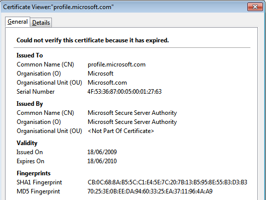 Oops – Microsoft Certificate expired when logging on with Live ID